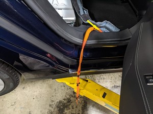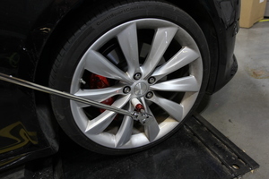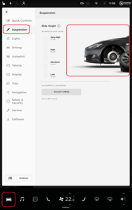 NoteLower rack arms fully and remove them from under vehicle, Remove air suspension from "Jack Mode" via Controls > Service > '' JACK MODE''
