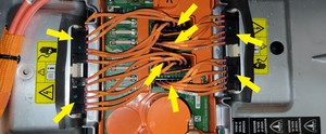 Disconnect and remove all 4 HV harnesses from both chargers to HVJB