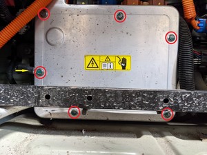 Note6 bolts, 8mm, 6.5 Nm, Move ground strap aside