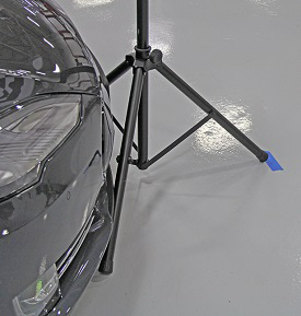 - Apply a piece of tape on the ground behind the tripod leg that is farthest from the vehicle.