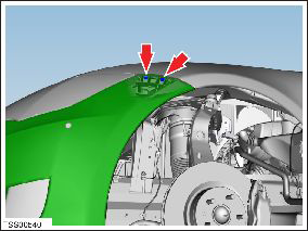- Remove the screw that attaches the fascia panel to the RH front fender (torque 1.5 Nm).