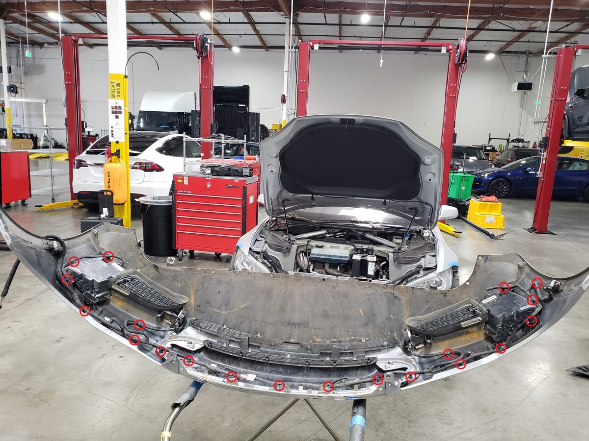- Disconnect the front parking sensor connectors (x6), if equipped.