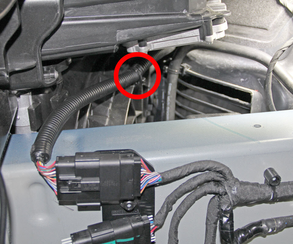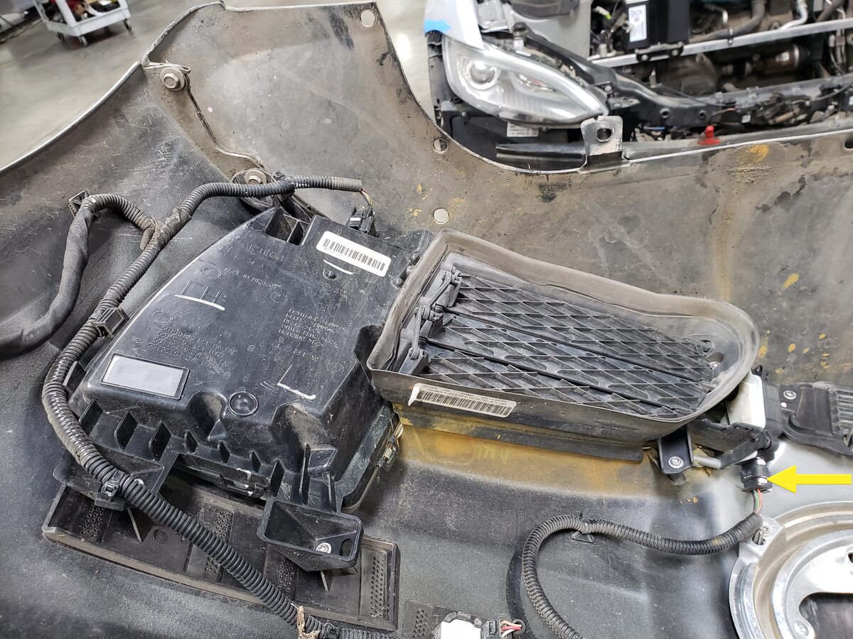 - Disconnect the fascia harness connector and release the clip that secures the fascia harness to the front fascia carrier.