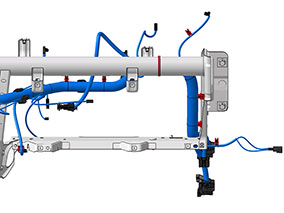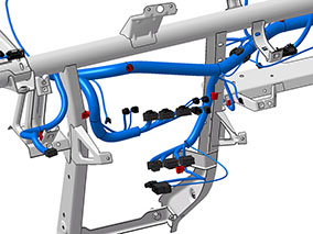 - Start by routing the new harness through the space between the HVAC assembly and the steering column.