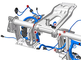 NoteThese graphics show a LHD vehicle produced in mid-2014. Earlier and later production vehicles might have slight differences in the location of mounting clips and the exact design of the harness.NoteMark the location of each edge clip before releasing it from the cross car beam.