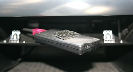CAUTIONDo not attempt to completely remove the SIM extender from the vehicle.NoteThe SIM extender is attached to the bottom of the MCU with Dual Lock.