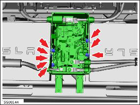 - Remove the bolts (x4) that secure the HV junction box (torque 5 Nm).
