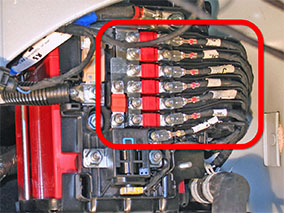 - Record the positions of the small-gauge cables at the RH side of the fusebox.