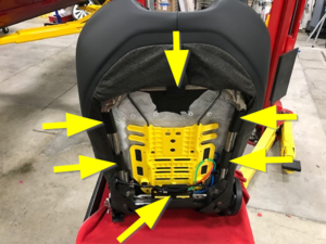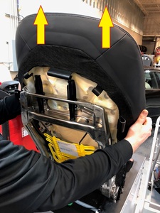 Remove the upper flap covering the inboard corner of the seat back frame
