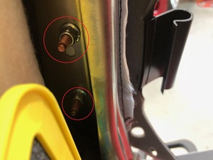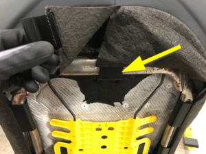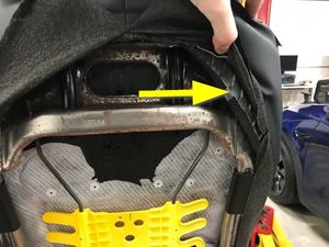 Remove the lower flap covering the inboard corner of the seat back frame