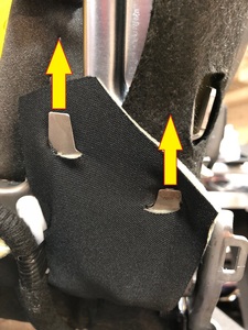 Remove the lower flap covering the outboard corner of the seat back frame