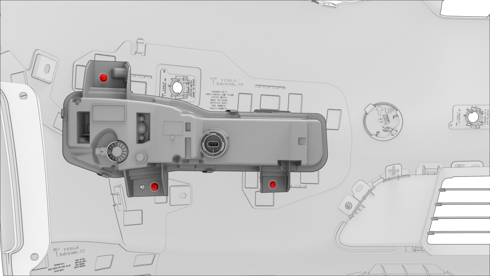 - Release the four clips that attach the fog light to the front fascia assembly, and then remove the fog light from the front fascia assembly.