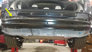 拆下将后保险杠纵梁固定到车身的螺母(8 个),然后从车上拆下后保险杠纵梁。