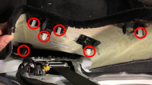 松开将左侧 B 柱下部饰板固定到 B 柱的卡子(6 个),然后从车上拆下饰板。