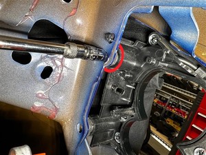注x2 datums注Start by lining up the datums on the charge port with the charge port door, and then proceed to thread in all bolts. - Secure the charge port manual release cable onto the body.