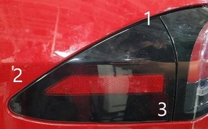 Area in Figure Flush Target Specifications #1: Charge port door to upper RH body No flush requirement #1: Charge port door to upper tailight 0 mm #2: Charge port door to LH body 2 mm #3: Charge port door to lower RH body 1.2 mm #3: Charge port door to lower taillight 0 mm -