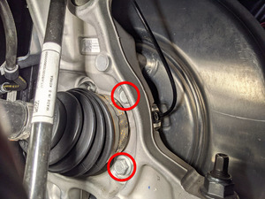安装将 LH 前轮毂固定到万向节的螺栓 (x4)。