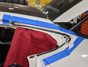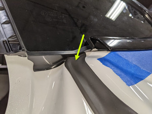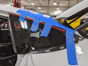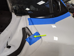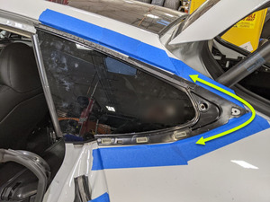 - 从左侧后三角窗处揭下遮蔽胶带。