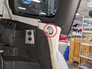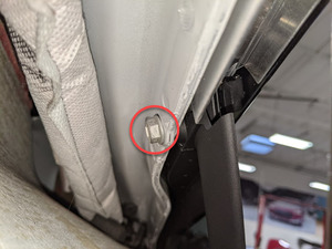 - 撬开后,松开连接右侧后衣帽钩螺钉盖扣的卡子(2 个)。