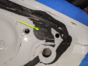 - 松开左侧的左侧后三角窗下方的摇杆密封圈,并将其用胶带封入车体。