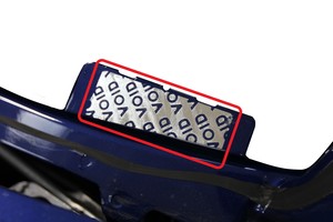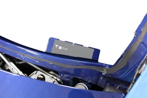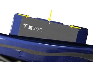将目标紧贴前饰板放置,并使其对准 T 徽标中心