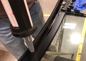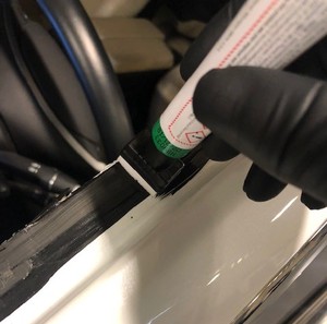 确保底漆充分覆盖拆卸挡风玻璃产生的擦痕,底漆干透后涂抹聚氨酯