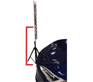 参考胶带的顶部应该位于两条绿线之间。上方绿色线 -2.0 度,下方绿色线 +1.5 度。_x000A_ 如果参考胶带不在两条绿色线之间,则根据车辆是否配备可调节俯仰支架,继续进行调整。