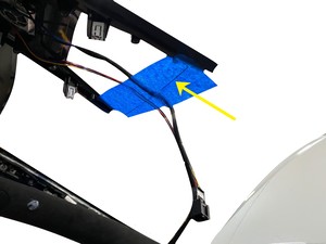4 个卡子,3 个连接器,确保后视镜线束的布线方式是自由悬挂在外部,而不是被盖板和遮光板总成夹住