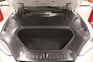 用力按压绿色高亮区域(请参阅图片);前备箱盖其他区域受压可能受损