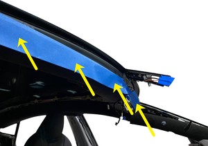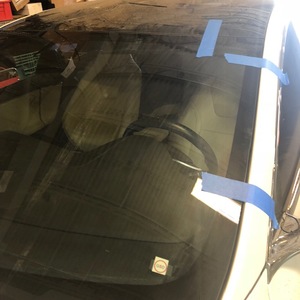 沿着玻璃上角处的挡风玻璃对齐标识对齐,从一个角落开始,一英寸一英寸地贴上胶带,以确保安装位置合适