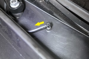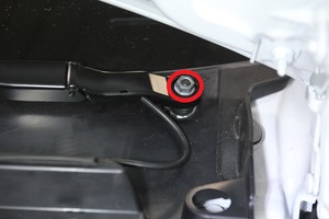 通过左侧减震塔盖板固定清洗器软管喷嘴