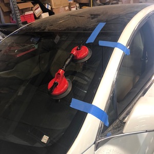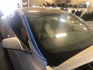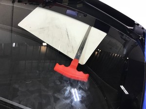 在聚氨酯凝固后,拆下固定挡风玻璃到车辆上的胶带