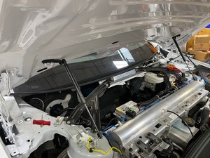 建议寻求协助,将前备箱盖部分关闭,以便获得更好的操作空间。