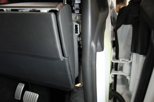将电线固定在启动工具上,然后将工具穿过右侧下侧的聚氨酯材料