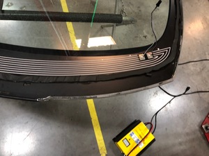 如已装备,需断开加热雨刷区域连接器,拆下挡风玻璃固定胶带