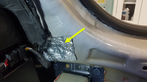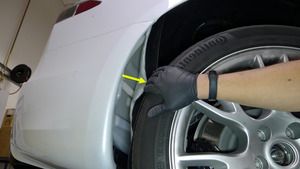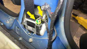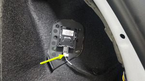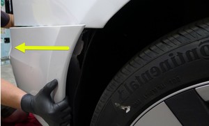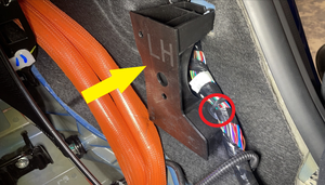 注1x connector, Engage locking tab, Located behind RH rear wheel arch liner