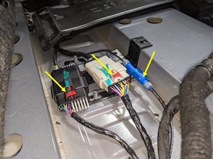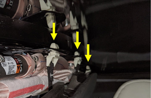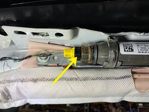 注3x connectors, 1x clip, 6x tabs, Release 2x locking tab on airbag connector