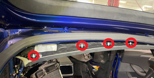 注7x clips, Release clips and route seatbelt through B-pillar, Be cautious not to separate the upper B-pillar, There are plastic welds near the center of trim holding upper and lower portion together