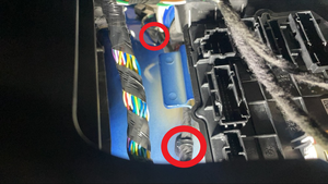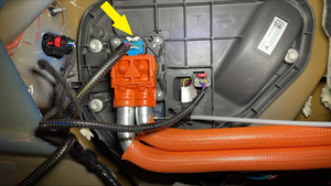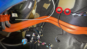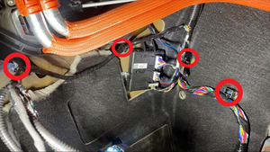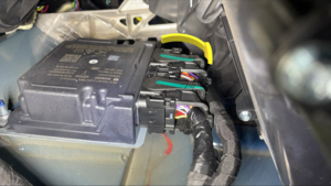 注2x connectors Secure FRL first, Seat LV battery connection and push black connector lock inwards to secure, Engage green locking tab when fully seated