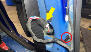 Position chair to gain access below seat bottom and connect RH side body harness to seat controller
