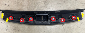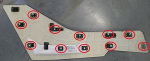 注6x clips, 4x guides Corners or bottom edge are good grabbing points for removal. Can use plastic trim tool or just your hands.