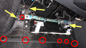 Remove fasteners securing LH knee air bag assembly to vehicle