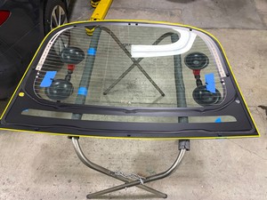 使用异丙醇 (IPA) 湿巾清洁掀背尾门玻璃上的聚氨酯路径。