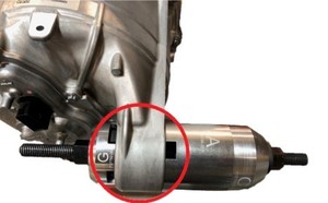 - 将后驱动单元降至空托盘上,然后在定子下方放置一个木块,以使总成保持竖直状态。