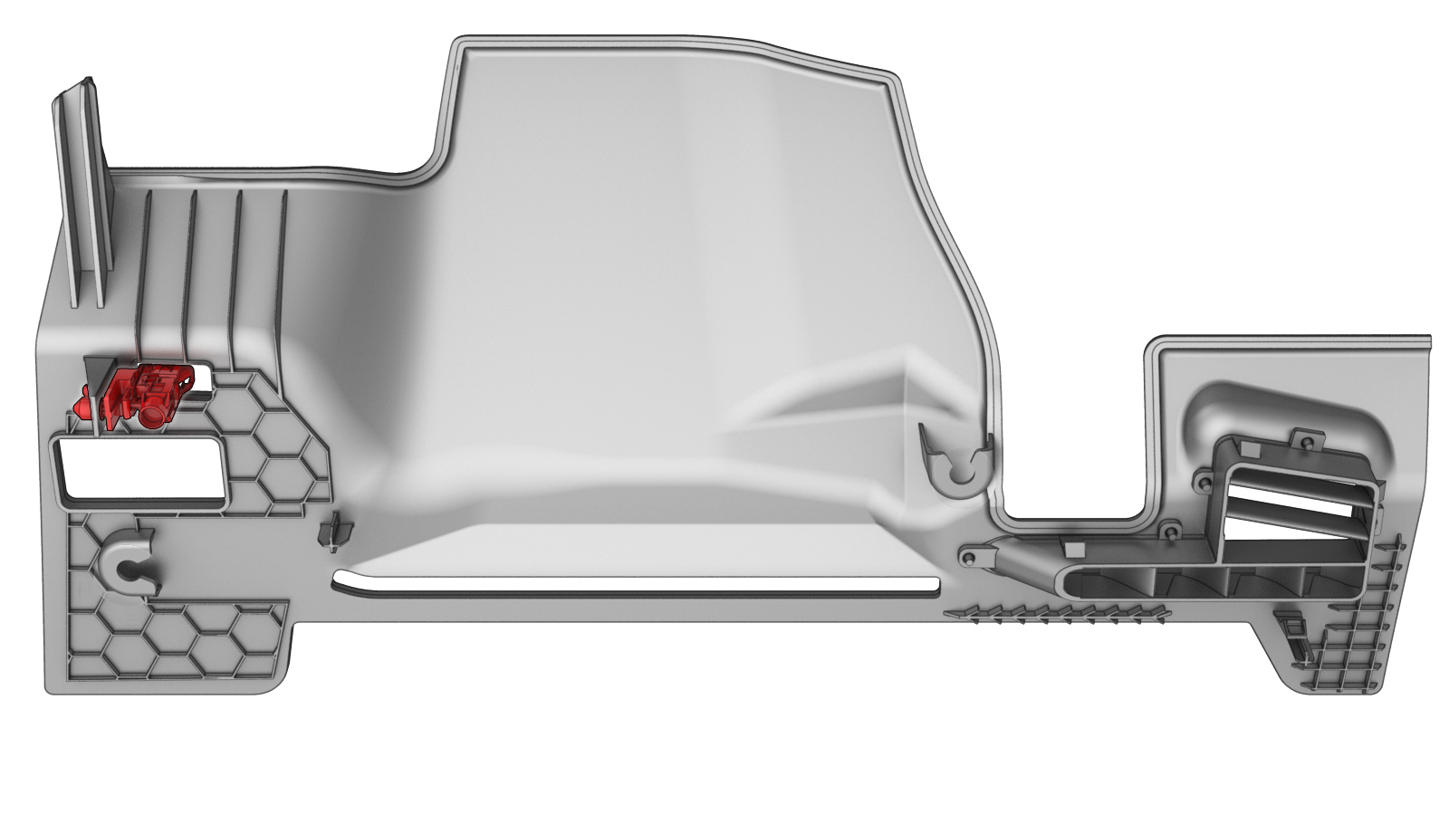 将驾驶座脚部空间盖板放置到对应位置,然后连接电气连接器。