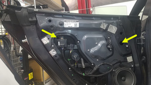 - 在左后车门上安装丁基橡胶贴片,以覆盖升降器隔离夹开口。