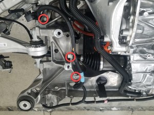 - 断开后副车架线束与左侧行驶高度传感器连接器的连接。