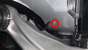 - 断开后副车架线束与右侧行驶高度传感器连接器的连接。