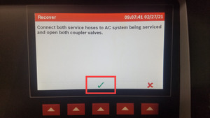 注从车辆上拆下低侧耦合器;关闭车辆;确认软管平衡设置;该过程完成后机器会发出蜂鸣声
