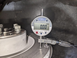 从后制动盘端部向内测量 45 毫米并对齐数字指示器。按下指示杆和零位测量。